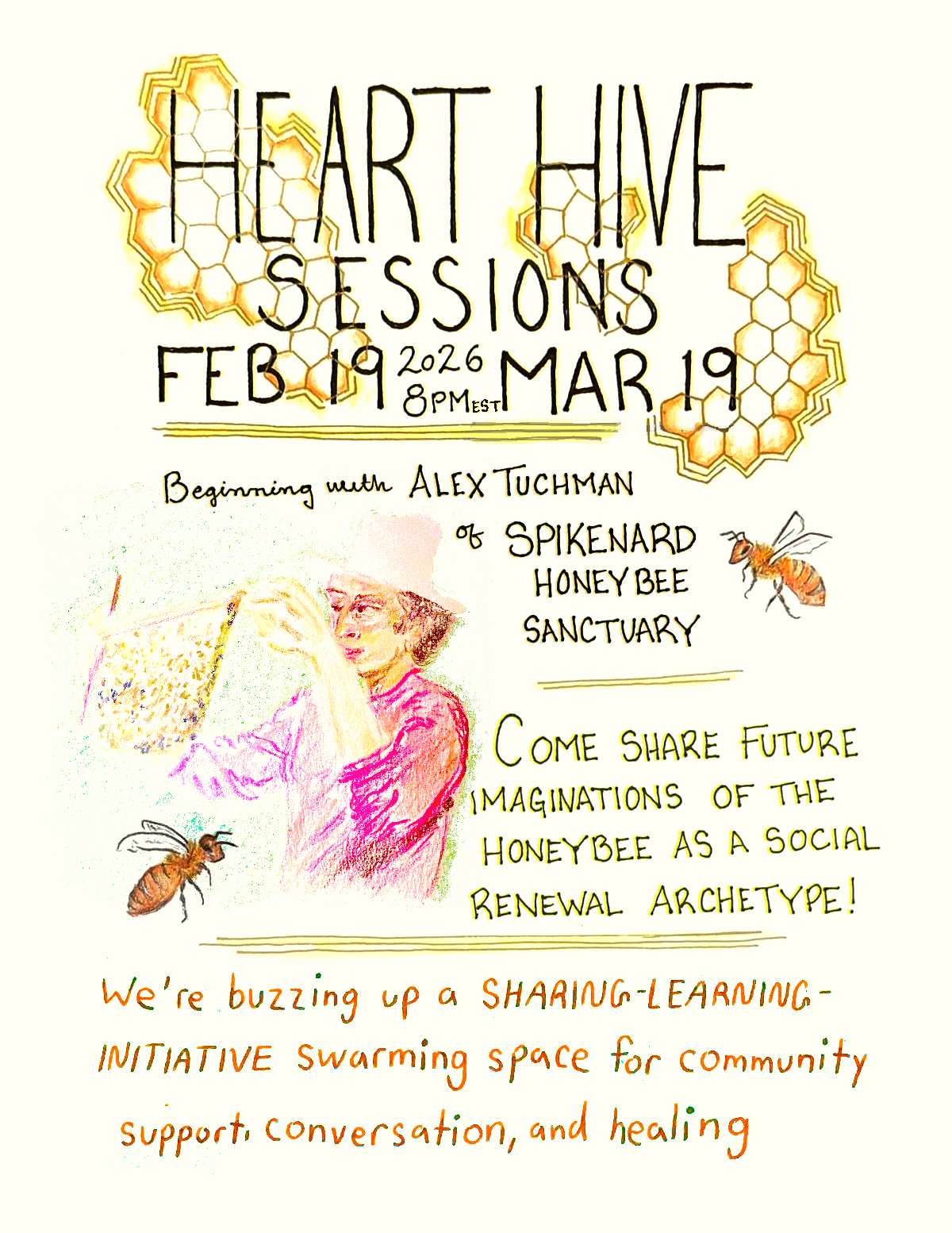 The hope is that this will grow into a living hive of mutual support, inspiration, and connection co-created over time by those who gather.